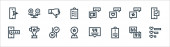 wznowić pracę ikony linii. zestaw liniowy. zestaw linii wektorowych jakości, takich jak książka, folder, teczka, trofeum, dokument, cv, podręcznik, certyfikacja