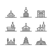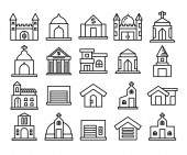 ikony linii budynków miejskich. zestaw liniowy. zestaw linii wektorowych jakości, takich jak kościół, domek, obserwatorium