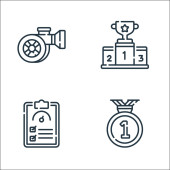 ikony piłki nożnej. zestaw liniowy. zestaw linii wektorowych jakości, takich jak apteczka pierwszej pomocy, gracze, trofeum
