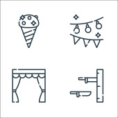 ikony linii cyrkowej. zestaw liniowy. wysokiej jakości zestaw linii wektorowych, takich jak trąbka, balansowanie, lody