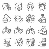 ikony coronavirus covid linii. zestaw liniowy. wysokiej jakości zestaw linii wektorowych, takich jak termometr, zapalenie płuc, maska medyczna