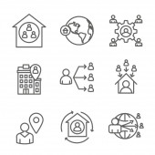 ikony linii blokady. zestaw liniowy. zestaw linii wektora jakości, takich jak obszar, uczestnictwo, niezbędne