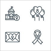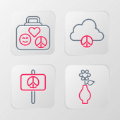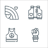 Ikony hipisów. zestaw liniowy. wysokiej jakości zestaw linii wektorowych, takich jak serce, hipis, pamela kapelusz