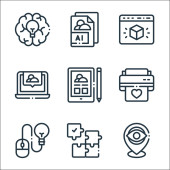 Zdjęcie "projektowanie ikon linii myślenia. zestaw liniowy. wysokiej jakości zestaw linii wektorowych, takich jak lokalizacja, chmura, schowek" może być wykorzystywane do celów osobistych i komercyjnych zgodnie z warunkami zakupionej licencji Royalty-free. Obraz jest dostępny do pobrania w jakości wysokiej rozdzielczości do 5760x3840.