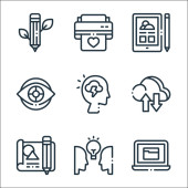 projektowanie ikon linii myślenia. zestaw liniowy. wysokiej jakości zestaw linii wektorowych, takich jak lokalizacja, chmura, schowek