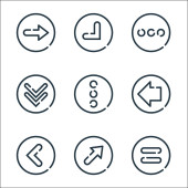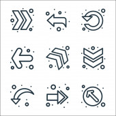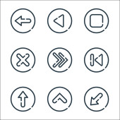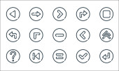 ikony linii strzałek. zestaw liniowy. wysokiej jakości wektor linii zestaw takich jak strzałka w górę, dół w prawo, góra w lewo, góra w prawo, w dół, krzyż, strzałka w górę, stop
