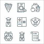 ikony linii akademii. zestaw liniowy. wysokiej jakości zestaw linii wektorowych, takich jak torba, klej kij, student