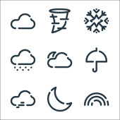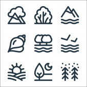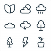 ikony linii natury. zestaw liniowy. zestaw linii wektorowych jakości, takich jak deszcz, kwiat, drzewo