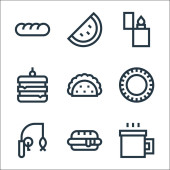 ikony linii pikniku. zestaw liniowy. wysokiej jakości zestaw linii wektorowych, takich jak filiżanka, puszka sody, stek