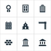 ikony linii zabudowy. zestaw liniowy. wysokiej jakości wektor linii zestaw takich jak mieszkanie, dom, bank, mieszkanie, drapacz chmur, rząd, kościół, fabryka