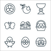 Ikony wielkanocne. zestaw liniowy. wysokiej jakości zestaw linii wektorowych, takich jak dzwonek, torba na zakupy, święty kielich
