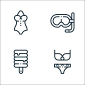 ikony parku wodnego. zestaw liniowy. wysokiej jakości zestaw linii wektorowych, takich jak bikini, bez zwierząt domowych, piłka