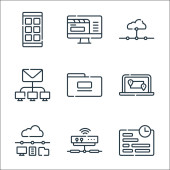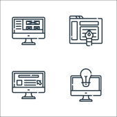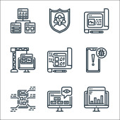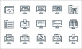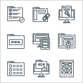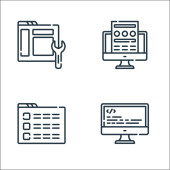 ikony linii rozwoju stron internetowych. zestaw liniowy. zestaw linii wektorowych jakości, takich jak mapa strony, logowanie, konserwacja, wytyczne, alert, front end, strona internetowa, kodowanie