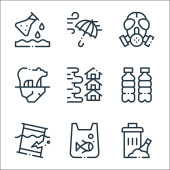 ikony linii zmian klimatycznych. zestaw liniowy. wysokiej jakości zestaw linii wektorowych, takich jak śmieci, góra lodowa, wiatr