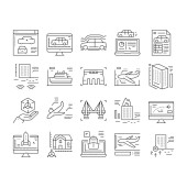 technologia przyszłych ikon linii. zestaw liniowy. wysokiej jakości zestaw linii wektorowych, takich jak autobus elektryczny, autonomiczny samochód, cpu