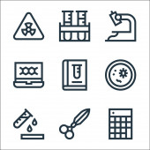 ikony linii laboratoryjnych. zestaw liniowy. zestaw linii wektorowych jakości, takich jak laboratorium, nożyczki, bakterie