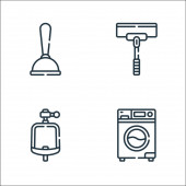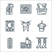 ikony linii szycia. zestaw liniowy. wysokiej jakości zestaw linii wektorowych, takich jak wieszak, nici, linijka, splot, pralka, nożyczki, szpilki