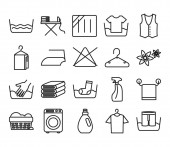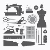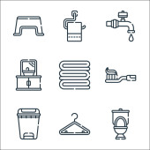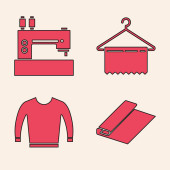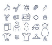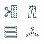 ikony linii szycia. zestaw liniowy. wysokiej jakości zestaw linii wektorowych, takich jak nożyczki, tkanina, szorty, linijka, frez, maszyna do szycia, wieszak, pralka