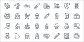 ikony linii zwierząt domowych. zestaw liniowy. wysokiej jakości zestaw linii wektorowych, takich jak chomik, sklep zoologiczny, szczotka do zwierząt domowych, wieszak, dom kotów, kołnierz, sklep zoologiczny, jedzenie, piłka