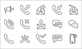 ikony linii komunikacyjnych. zestaw liniowy. zestaw linii wektorowych jakości, takich jak poczta, poczta, komunikacja