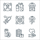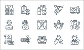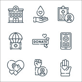 ikony linii życzliwości. zestaw liniowy. zestaw linii wektorowych jakości, takich jak darowizna online, kamizelka, dać