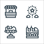 ikony parku rozrywki. zestaw liniowy. wysokiej jakości zestaw linii wektorowych, takich jak rowery wodne, diabelski młyn, bilet