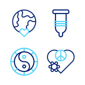 Ikony hipisów. zestaw liniowy. wysokiej jakości zestaw linii wektorowych, takich jak mikrofon, doniczka, plaża