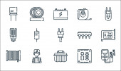 elektronarzędzia i ikony linii. zestaw liniowy. wysokiej jakości zestaw linii wektorowych, takich jak lampa, kabel, ryby