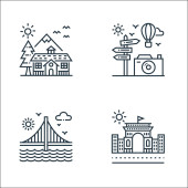 Zdjęcie "ikony linii turystycznych. zestaw liniowy. wysokiej jakości zestaw linii wektorowych takich jak przyczepa kempingowa, samolot, wakacje na plaży" może być wykorzystywane do celów osobistych i komercyjnych zgodnie z warunkami zakupionej licencji Royalty-free. Obraz jest dostępny do pobrania w jakości wysokiej rozdzielczości do 5760x3840.