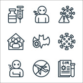 ikony linii koronawirusów. zestaw liniowy. zestaw linii wektorowych jakości, takich jak szczepionka, mikroskop, pandemia