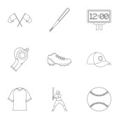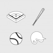Ikony baseballa. zestaw liniowy. wysokiej jakości zestaw linii wektorowych, takich jak skarpety, ognista kula, boisko baseballowe