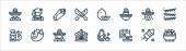 ikony linii cinco de mayo. zestaw liniowy. wysokiej jakości zestaw linii wektorowych, takich jak awokado, chili, cinco de mayo, tortilla, kaktusy, napoje, pub, taco