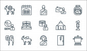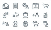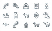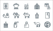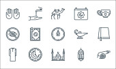 ikony linii eid al adha. zestaw liniowy. wysokiej jakości zestaw linii wektorowych, takich jak orientalne jedzenie, noże, mężczyzna, rzeźnik, latarnia, meczet, krowa, noże, kobieta