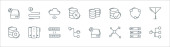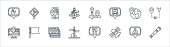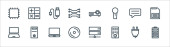 ikony linii telekomunikacyjnych. zestaw liniowy. zestaw linii wektorowych jakości, takich jak słuchawki, online, informacje, wymiana, modem, chat box, online, wifi