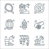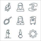 ikony linii Ramadan. zestaw liniowy. wysokiej jakości zestaw linii wektorowych, takich jak kaaba, kobieta, Koran, latarnia, minaret, czyszczenie, halal, sparkler, tasbih