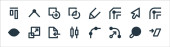 ikony linii muzycznej. zestaw liniowy. wysokiej jakości zestaw linii wektorowych, takich jak wypalanie cd, pauza, wyciszony, grać, słuchawki, powtarzać, bez dźwięku, nuta muzyczna