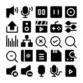 ikony linii muzycznej. zestaw liniowy. wysokiej jakości zestaw linii wektorowych, takich jak playlista, powtarzanie, pauza, dodaj do listy odtwarzania, mikrofon, stop, mikrofon, winyl, radio