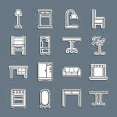 ikony linii mebli domowych. zestaw liniowy. wysokiej jakości zestaw linii wektorowych, takich jak kuchnia, siedzenie, drabina, szafa, wanna, komoda, monitor TV, szafka nocna, kino domowe