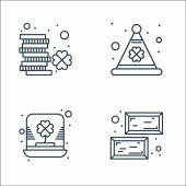 Ikony świętego Patricka. zestaw liniowy. wysokiej jakości zestaw linii wektorowych, takich jak zaproszenie, książka, złoto, chmura, monety, celtycki, kalendarz, torba