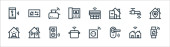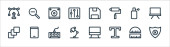 ikony linii elektroniki. zestaw liniowy. wysokiej jakości zestaw linii wektorowych, takich jak cctv, aparat fotograficzny, telefon, kalkulator, klawiatura, tablet graficzny, pralka, głośnik
