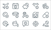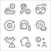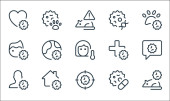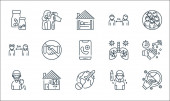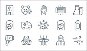 ikony linii koronawirusów. zestaw liniowy. zestaw linii wektorowych jakości, takich jak DNA, dziecko, ostrzeżenie, antywirus, kobieta, wirus, śmierć, maska twarzy, mysz