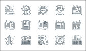 ikony linii nauki online. zestaw liniowy. wysokiej jakości zestaw linii wektorowych, takich jak książka, książka audio, list, stopniowanie, smartfon, plik tekstowy, projektor wideo, pomysł