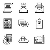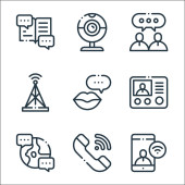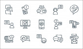ikony linii komunikacyjnych. zestaw liniowy. wysokiej jakości zestaw linii wektorowych, takich jak komunikacja, wiadomość, telefon, czat, słuchawki, mikrofon, książka, jak, grupa