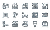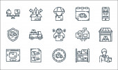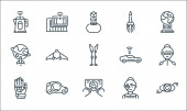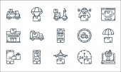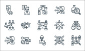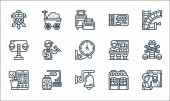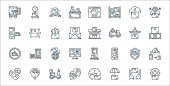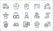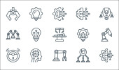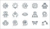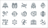 technologia przyszłych ikon linii. zestaw liniowy. wysokiej jakości zestaw linii wektorowych, takich jak człowiek, autobus elektryczny, sztuczna inteligencja, buty latające, hologram, samochód, egzoszkielet, ładunek elektryczny, uav