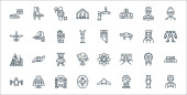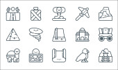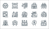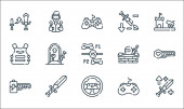 technologia przyszłych ikon linii. zestaw liniowy. wysokiej jakości zestaw linii wektorowych, takich jak jetpack, kopuła, quadrocopter, telefon składany, futurystyczny, egzoszkielet, rzeczywistość wirtualna, drukarka d, smartwatch