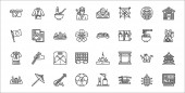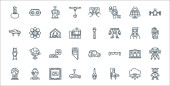 technologia przyszłych ikon linii. zestaw liniowy. wysokiej jakości zestaw linii wektorowych, takich jak człowiek, hologram, sztuczna inteligencja, jetpack, statek kosmiczny, robot, robot, składany telefon, energia wiatru
