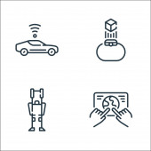 Zdjęcie "technologia przyszłych ikon linii. zestaw liniowy. wysokiej jakości zestaw linii wektorowych, takich jak dźwig, cpu, d drukarki, kopuła, robot, smarthome, autonomiczny samochód, cyborg" może być wykorzystywane do celów osobistych i komercyjnych zgodnie z warunkami zakupionej licencji Royalty-free. Obraz jest dostępny do pobrania w jakości wysokiej rozdzielczości do 5760x3840.