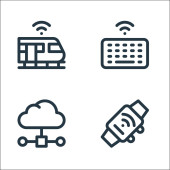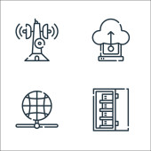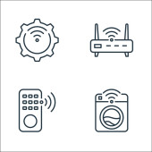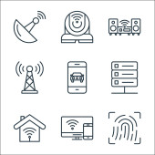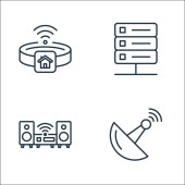 Internet rzeczy ikony linii. zestaw liniowy. zestaw linii wektorowych jakości, takich jak antena, baza danych w chmurze, zestaw słuchawkowy