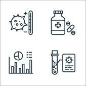ikony linii wirusów. zestaw liniowy. wysokiej jakości zestaw linii wektorowych, takich jak badanie krwi, termometr, diagnoza, mydło, szpital, tabletki, łóżko szpitalne, butelka tabletek