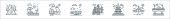 ikony linii kryzysu gospodarczego. zestaw liniowy. zestaw linii wektorowych jakości, takich jak obligacje, odsetki, recesja, inflacja, dług, bank, nieruchomości